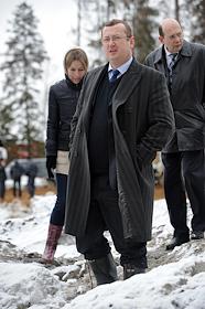 Заместитель председателя правления госкомпании "Автодор" Андрей Журавлев (в центре) на участке, где…