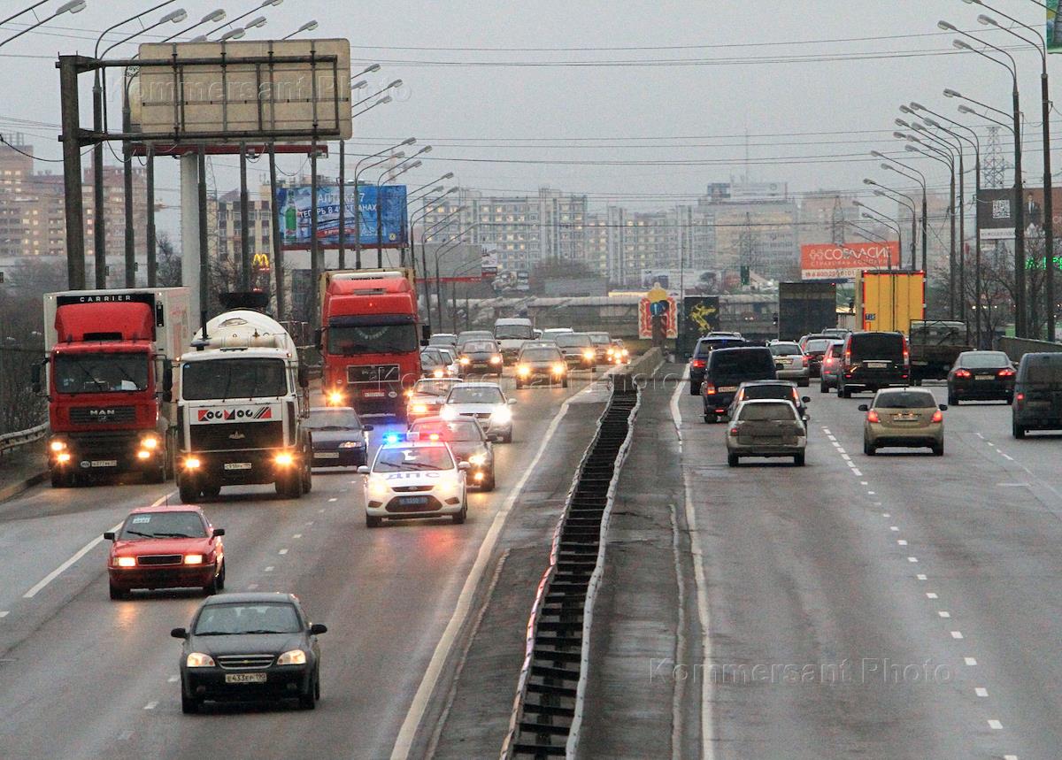 Движение автомобилей на Ленинградском проспекте.