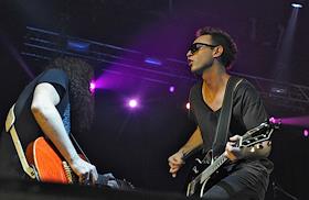 Солист группы "Звери" Роман Билык (справа) во время выступления на концерте группы в клубе "Arena…