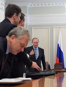 Председатель правительства России Владимир Путин (справа) во время заседания наблюдательного совета…