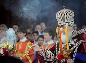 Начальник ГУВД по Москве Владимир Колокольцев во время праздничного пасхального богослужения в храме…