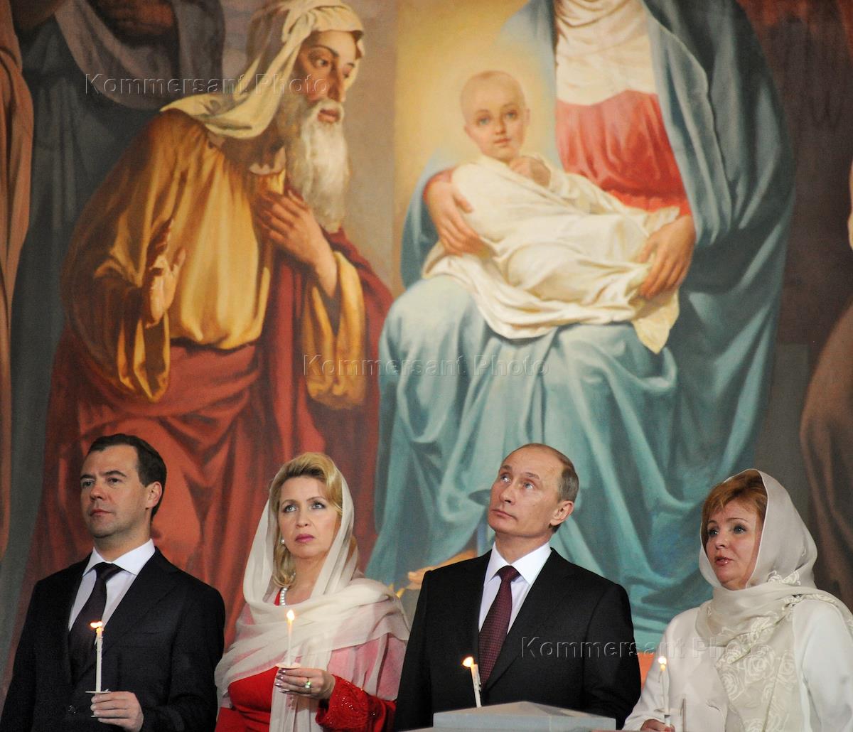 Президент России Дмитрий Медведев с супругой Светланой во время праздничного пасхального…
