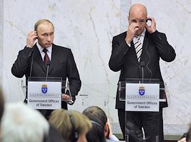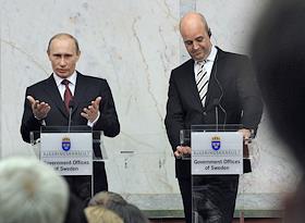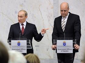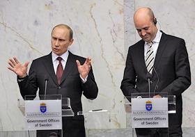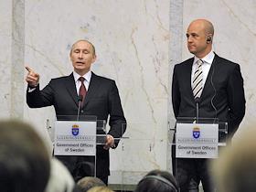 Председатель правительства России Владимир Путин (слева) и премьер-министр Швеции Фредрик Рейнфельдт…