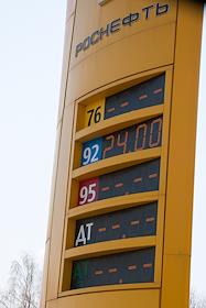 Жанровая фотография. Стойка с ценами на АЗС "Роснефть".
