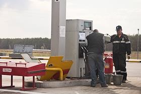 Жанровая фотография. Рабочие проводят отладку бензоколонки на АЗС "Роснефть".