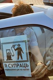 Политика Организатор акции Стоп-бензин Артем Шарков готовит самые мелкие белорусские деньги для оплаты 2-х литров бензина на автозаправке, Минск, 28 апреля 2011 года. Через некоторое время он был задержан милицией, а акция против повышения цен на бензин практически была сорвана.