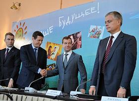 Президент России Дмитрий Медведев (в центре) на совещании по организации летнего отдыха детей и…