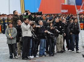 Жанровая фотография. Фотокорреспонденты во время работы на военном параде на Красной площади,…