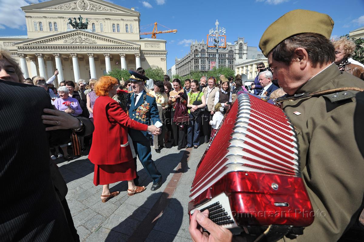 Встреча участников Великой Отечественной войны (ВОВ) в сквере у фонтана на площади у здания…