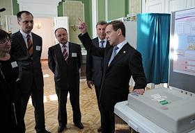 Рабочий визит Президента России Дмитрия Медведева в Кострому. Посещение комплекса автоматических систем для обработки бюллетеней в здании избирательной комиссии Костромской области.