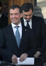Президент России Дмитрий Медведев (слева) и первый заместитель руководителя администрации президента…