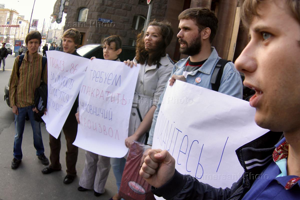 Политика Акция против приказа о вступительных экзаменах в вузы, организованная Российским студенческим Союзом, у здания министерства образования и науки РФ.