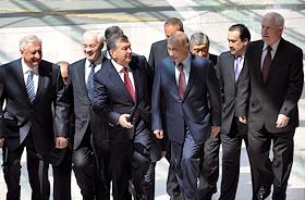 Министр Белоруссии Михаил Мясникович (второй слева), премьер-министр Киргизии Алмазбек Атамбаев…