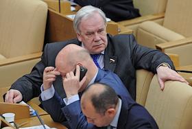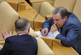 Член Комитета Государственной думы России по бюджету и налогам Владимир Пехтин (слева) во время…