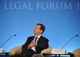 Президент России Дмитрий Медведев после пленарного заседания Петербургского международного…