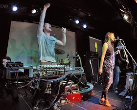 Солистка британской группы Lamb Лу Роудс (справа) во время выступления на концерте группы в клубе…