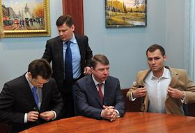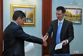 Слева направо: генеральный директор ГУП "Мосгортранс" Петр Иванов, генеральный директор агентства…