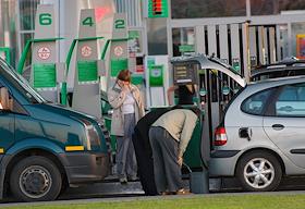 Водители заправляют канистру с бензином на заправке накануне подорожания цен на топливо.