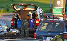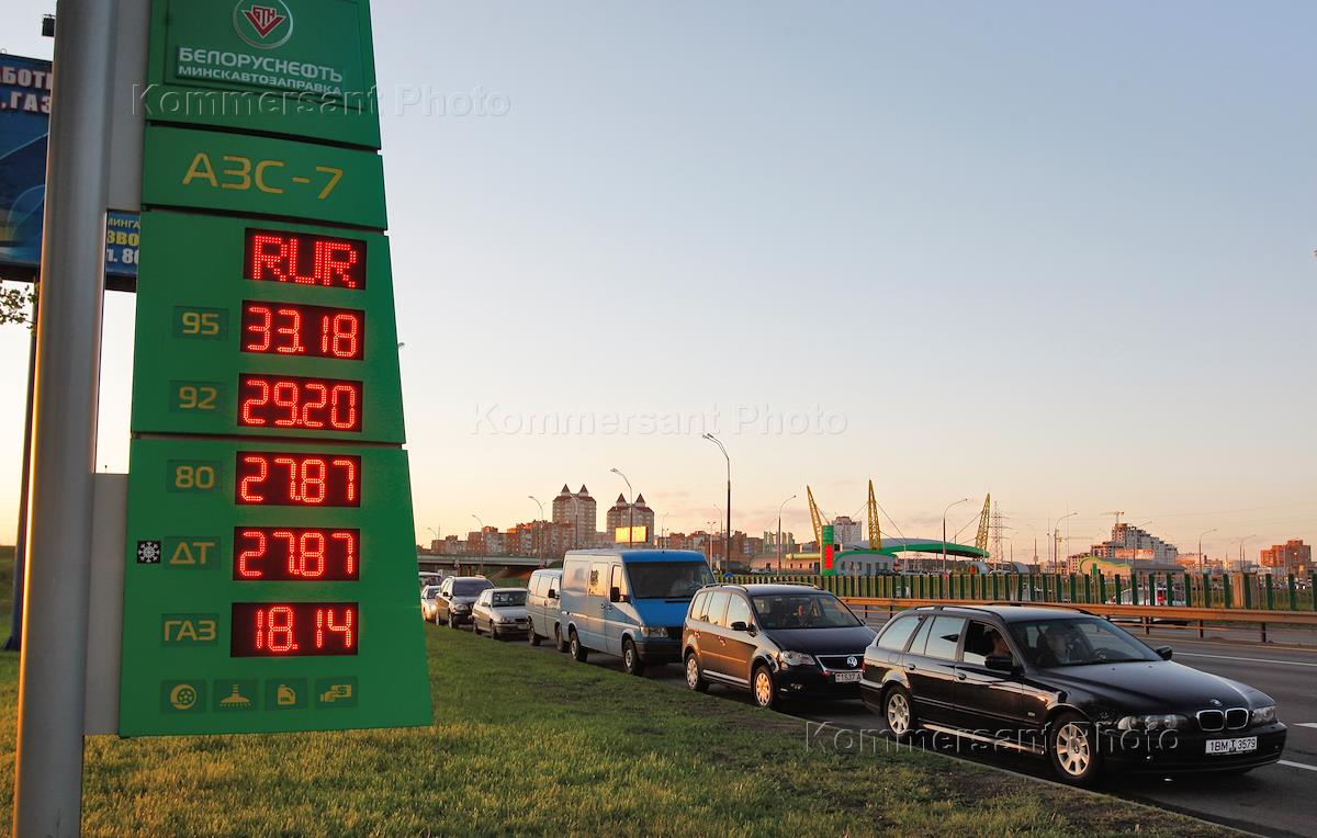 Очередь автомобилей на заправку перед подорожанием топлива со вторника 24 мая на 20 процентов, Минск, 23 мая 2011 года.