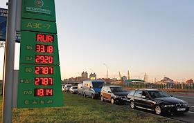 Очередь автомобилей на заправку накануне подорожания цен на топливо.