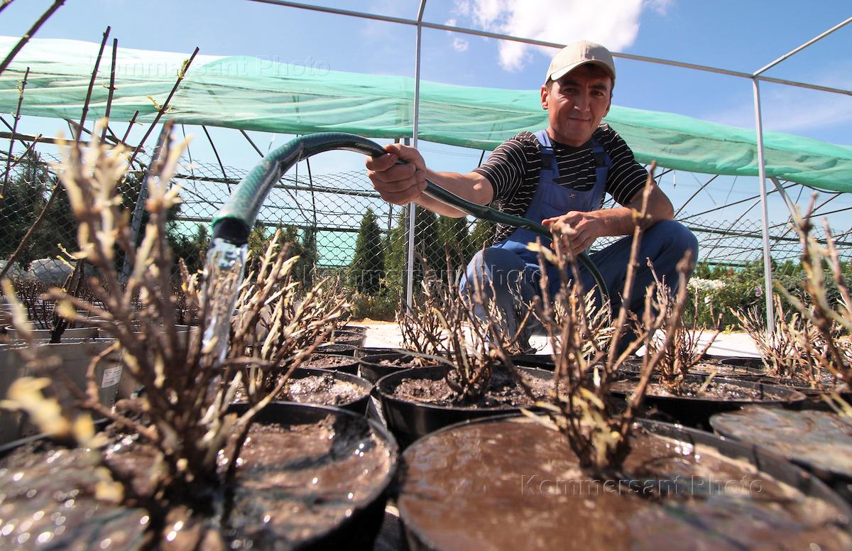 Корреспондент ИД "КоммерсантЪ" Иван Ждакаев в питомнике декоративных растений "Корни".