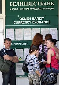 Экономический кризис в Белоруссии. Очередь у пункта обмена валют.