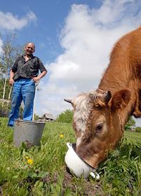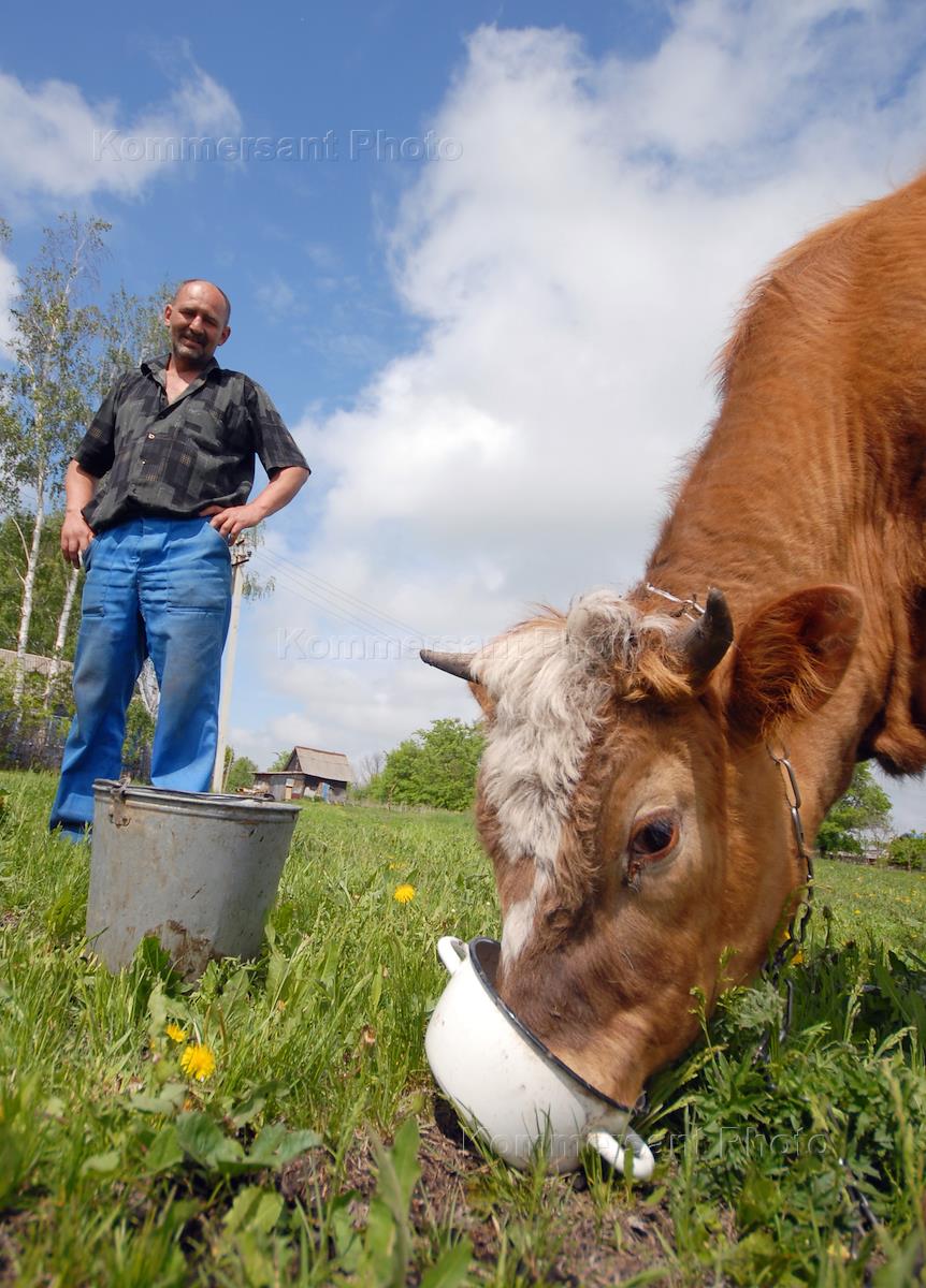 Кормление телят в личном хозяйстве в деревне Виноградовка Липецкой области.
