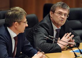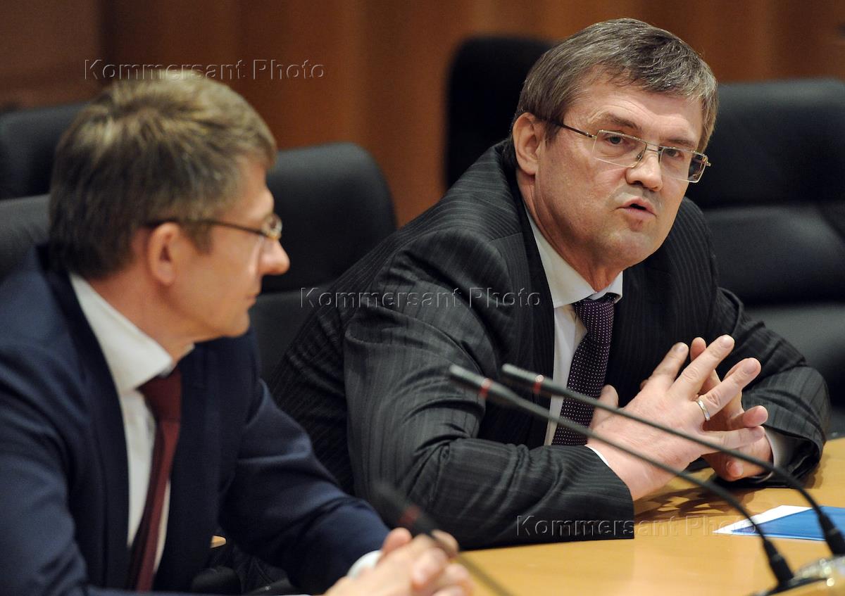Исполняющий обязанности генерального директора ОАО "Лужники" Александр Пронин (слева) и генеральный…