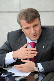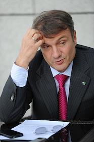 Глава Сбербанка России Герман Греф во время интервью в офисе Сбербанка.