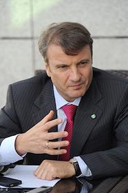 Глава Сбербанка России Герман Греф во время интервью.