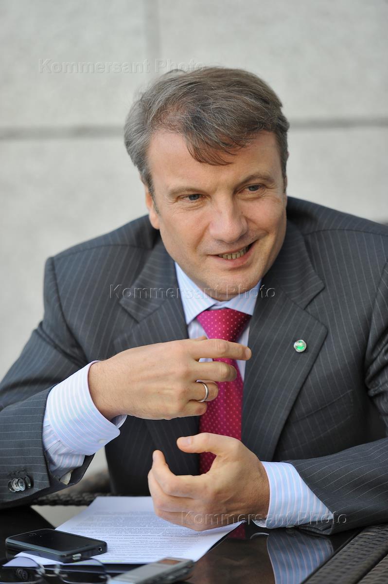 Глава Сбербанка России Герман Греф во время интервью в офисе Сбербанка.