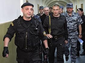 Бывший глава НК "ЮКОС" Михаил Ходорковский (четвертый слева) в здании Басманного суда, где он…