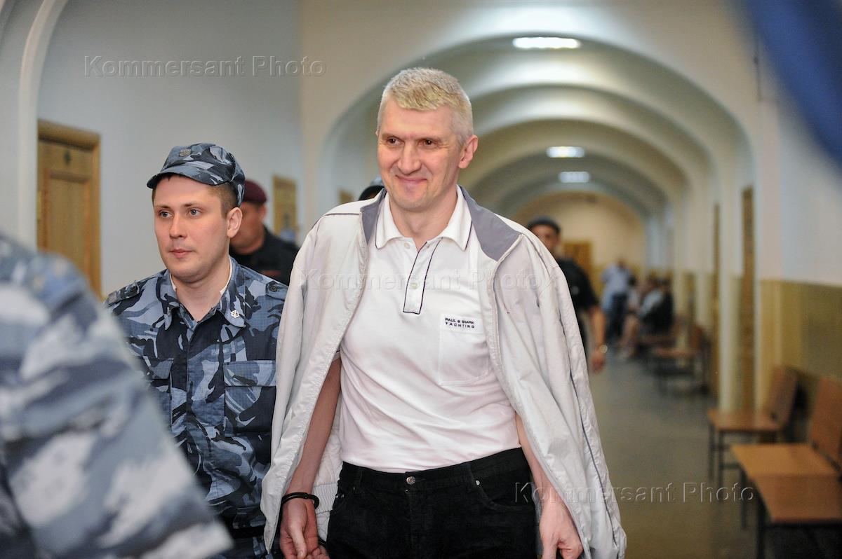 Бывший руководитель МПО "Менатеп" Платон Лебедев (справа) в здании Басманного суда, где он выступил…