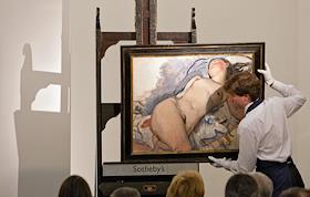 Картина художницы Зинаиды Серебряковой "Лежащая обнаженная" на "Русских торгах" аукционного дома…
