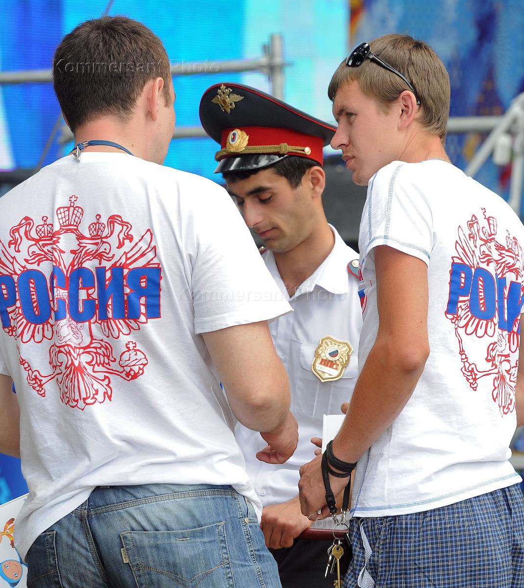 Сотрудница коммунальной службы подметает листву на площади перед началом торжественной церемонии…