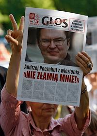Участники пикета в защиту корреспонента "Газеты выборчей" Андрея Почобута, обвиняемого в клевете на…