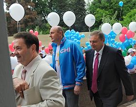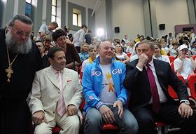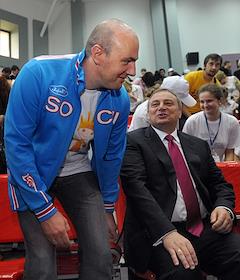 Мэр Сочи Анатолий Пахомов (слева) перед началом торжественного открытия центра подготовки волонтеров…