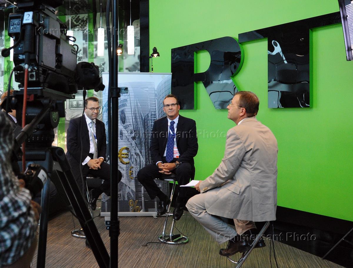 Первый день работы XV Петербургского Экономического Форума. Стенд радиостанции "КоммерсантъFM".