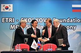 Фондом развития Инновационный центр "Сколково" и Научно-исследовательский институт электроники и телекоммуникаций Республики Корея (ELECTRONICS AND TELECOMMUNICATIONS RESEARCH INSTITUTE (ETRI) в рамках российско-корейского инвестиционного форума.