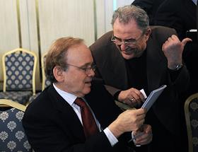 Председатель IHS CERA Даниэль Ергин (слева) и генеральный директор ЗАО "ГУ ИЭС" Виталий Бушуев…