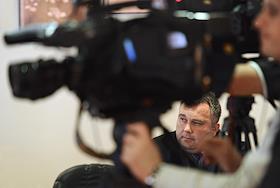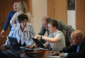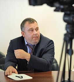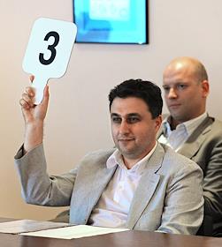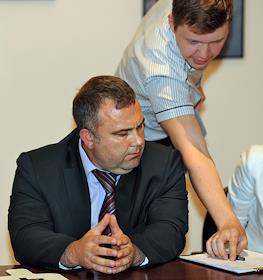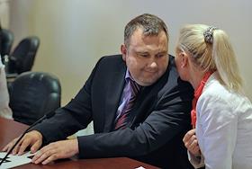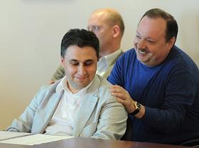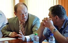 Коммерческий директор компании "Олимп" Альберт Теплицкий (слева) на открытом аукционе "Мосгортранса"…