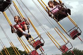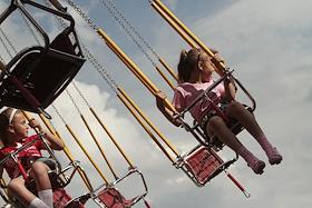 Дети катаются на аттракционе в парке "Сокольники".