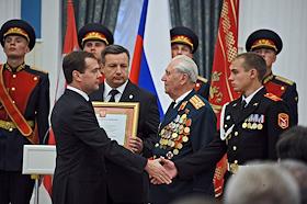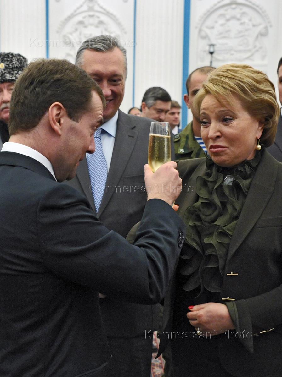 Светская жизнь Президент РФ Дмитрий Медведев во время церемонии вручения грамот о присвоении звания "Город воинской славы" Анапе, Колпино и Старому Осколу, в Кремле.