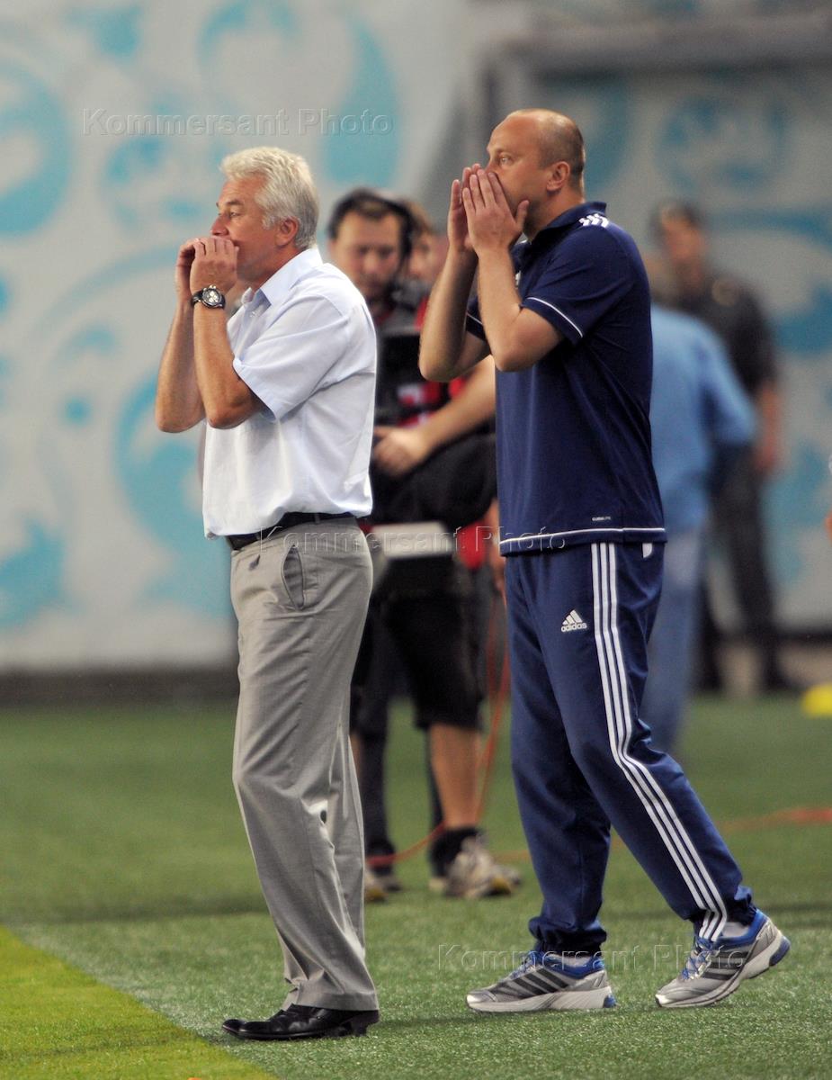 СОГАЗ Чемпионат России по футболу. 16 Тур. Главный тренер "Динамо" Сергей Силкин (слева) и тренер…