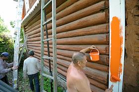 Жанровая фотография. Бутово. Мужчины красят стены частного жилого дома.