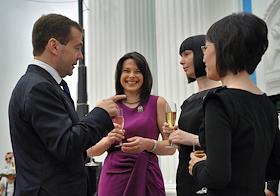 Слева направо: президент России Дмитрий Медведев, пианистка Екатерина Мечетина, поэт Мария Маркова и…