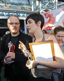 XXXIII Московский международный кинофестиваль (ММКФ). Режиссер Саулюс Друнга (слева) на церемонии…