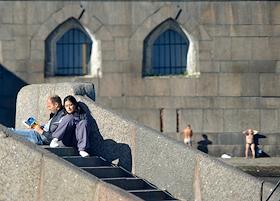 Жанровая фотография. Пара отдыхает на берегу Невы.