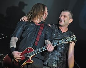 Десятый юбилейный рок-фестиваль "Нашествие-2011". Солисты группы БИ-2 Шура (слева) и Лева (справа)…