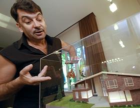 Поэт Владимир Вишневский осматривает макет коттеджа в коттеджном поселке "Покровское-Рубцово".